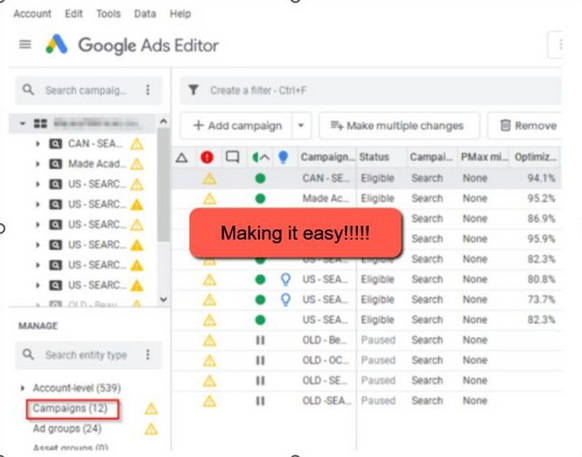 - Handling large amounts of data: If you manage multiple accounts or campaigns with a lot of ad groups, Ads Editor lets you organize everything in one place.